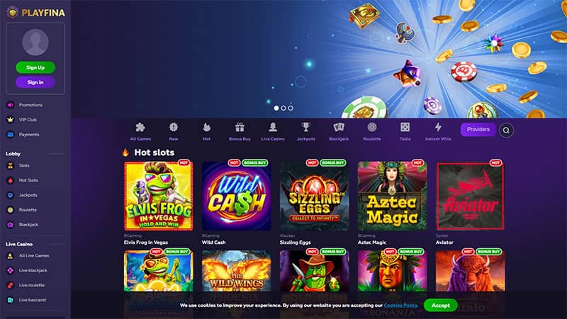 More than 11,000 slots, all varieties of blackjack, dozens of roulette games, craps, video poker, and other games are available to you at Playfina casino online Enhancing Your Gaming Experience - Unveiling the Enthralling World of Playfina Bonus Codes! Play the Best Online Casino Games at Playfina ✓ Try Slots, Blackjack, Roulette, Craps and Video Poker with Huge Bonuses. Playfina Casino How to Start Up to 1000€ + 200 FS + Secret Bonus... Playfina Casino - Bonus Codes – 50 Free Spins!
